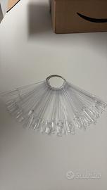 Disponibili 17 kit di Tip espositore unghie 50 pezzi , diverse forme : quadrata , stiletto e mandorla . Plastica trasparente