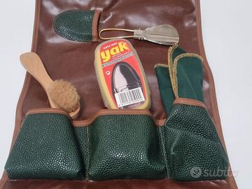 Kit per pulizia cura scarpe vintage portatile borsa da viaggio con spazzole