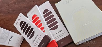 Kit unghie MANIKO adesive semplice da applicare, composto da lampada 3 colori e uno smalto gel ultra brillante.
