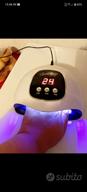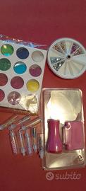 Kit ricostruzione unghie con varie tonalità di gel, lampada led con timer, tip di diverse misure, brillantini e glitter vari. Vendita in blocco