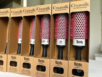 Come da titolo propongo kit spazzole professionali con rullo in ceramica e setole antibatteriche. Il kit è composto da sei spazzole di diametro diverso: 13mm-18mm-24mm-30mm-36mm-42mm. (Il kit comprende una spazzola per ogni misura) Per ulteriori informazioni o per l’acquisto singolo delle spazzole info in privato) “La nostra spazzola professionale Ceramik Antibacteric Oxy, con rullo ad ossigeno, ti garantisce un trattamento all'avanguardia che ti farà amare lo styling. Il manico, realizzato in legno di frassino certificato al 100% FSC®, è stato trattato con olio di lino e cera vegetale di carnauba. Asciuga i capelli senza elettrizzarli, fissa il colore cosmetico e dona un effetto morbido e setoso. Adatta per chi ha capelli molto crespi e lunghi. Che tu sia un professionista o una persona che ama prendersi cura dei propri capelli, non potrai fare a meno di innamorarti dei risultati che posso offrirti. I nostri prodotti sono Made in Italy, certificato VeganOK e 100% FSC®, il che significa che sono realizzato con attenzione verso l'ambiente. Per ridurre ulteriormente l'impatto ambientale, un packaging unico ed ecologico che sottolinea il nostro impegno di Tek per la bellezza e la sostenibilità.”