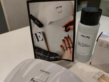 kit Mi-ny per unghie con lampada UV, lime di vario tipo, cleaner e smalto bordeaux. tutto usato 1 volta