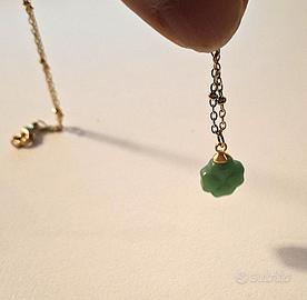 Collana regolabile con ciondolo verde a forma di quadrifoglio.