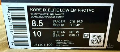 Come da titolo in vendita queste Kobe Ix Elite Low Em Protro (taglia 42) colore bianco acquistate a gennaio 2026 e praticamente mai indossate, compresi nella confezione anche i lacci bianchi.