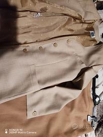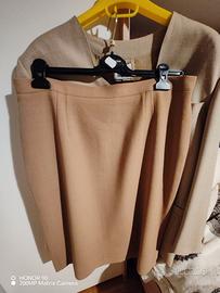 Completo donna elegante giacca + gonna primaverile in pura lana vergine leggera-fresco di lana- taglia 46. Giacca in tessuto fantasia minuta con 3 tasche e un taschino , taglio sartoriale con bella scollatura, portabile da sola o con sottogiacca; gonna dritta tinta unita color miele ,lunghezza appena sotto al ginocchio. Marca Krizia per te. Condizioni ottime.
