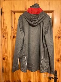 KE antipioggia uomo/unisex Crivit, colore grigio con particolari rossi. Impermeabile e antivento. Cappiccio e tasche con cerniera, tutte le cerniere sono imperbeabili. Mai usato, riposto da un paio di anni. Taglia 52 - L