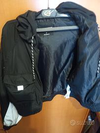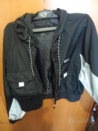brand tally wejl corto.in vita con grosso elastico cappuccio cerniera centrale e due tasche laterali