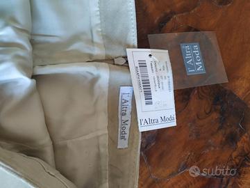 Gonna L'altraModa by Max Mara in vera pelle scamosciata color ghiaccio, con bordo in morbido pelo in tinta. Nuova ha ancora i cartellini attaccati, pagata uno sproposito, rischia di restare nell'armadio. Modello a tubino, senza cinturino e senza spacco, lunghezza in foto con cerniera posteriore. Un capo eccezionale ma per un uso più facile e frequenti si può togliere il bordo di pelo disponibile a qualunque prova in roma eur