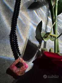 collana con perle nere e ciondoli in resina colorate ... studiata x metterla in 3/ 4 modi intrecciati diversamente ... molto giovanile ma molto bella x una serata elegante o x una serata di ballo 😍 il ciondolo a cuore puo' entrare dentro il rombo o restare fuori in base al gusto della persona ... x info solo wozzap al 3665903151