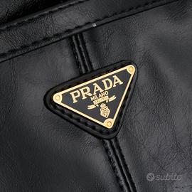 Questa borsa grande in pelle cerata nera e oro, dallo stile retrò ma elegante, con i suoi inserti in bianco e nero con filo dorato, brilla al sole.