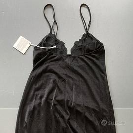 La Perla Ninfea Sottoveste Nera. Sottoveste asimmetrica in morbido modal trasparente e con bordo di fiori ricamati, tagliati a laser e applicati lungo la scollatura e lo spacco laterale. Spalline regolabili. Taglia XS.