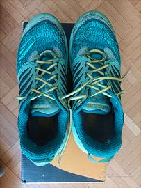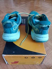 Vendo La Sportiva scarpe da trail running modello Akasha woman, colore Emerald/Mint, numero 38 1/2. Usate, tomaia e punta rovinate, suola ancora in ordine.
