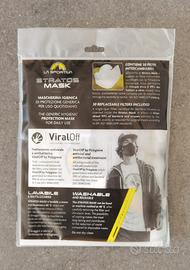 La Sportiva Mascherina Unisex Stratos Mask + confezione filtri di ricambio, in confezione originale sigillata. Prezzo di listino mascherina + filtri 30 euro. 2 pezzi disponibili.