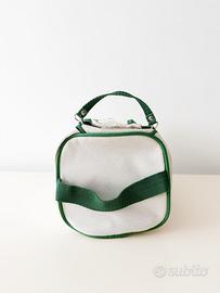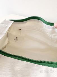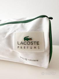 Trousse Lacoste in tessuto con apertura a doppia cerniera, 3 tasche interne di cui una a chiusura con cerniera. Ottime condizioni. Lunghezza 25 cm, altezza 15 cm, profondità 15 cm.