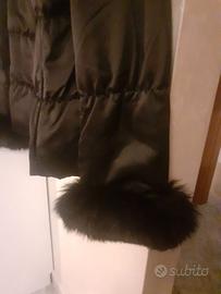 Giacca nera, arricchita con elementi di vera pelliccia lungo l'abbottonatura e sulle maniche.