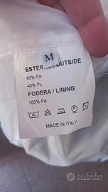 Giacca modello bomber color argento per donna taglia M. doppia chiusura con zip e cerniera. cappuccio non removibile usato non più di due volte.
