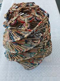 Lampadari realizzati e creati con passione e pazienza da Frenky riciclo carta e non solo, con un particolarissimo intreccio che li rende bellissimi alla vista quando sono montati con lampadina e accesi, con particolare effetto ombra-luce. Il prezzo si riferisce al singolo oggetto.