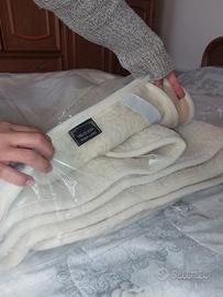 set completo matrimoniale lana merino, per inutilizzo mai usato, solo aperto il sacchetto,una fascia renale, 2 cuscini, fascia cervicale, 2 paio di ciabatte.