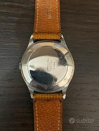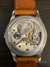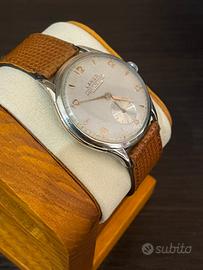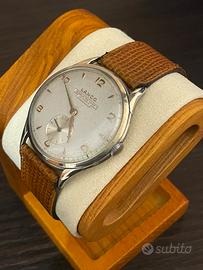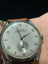 Vendo da collezione privata un meraviglioso lanco anni 40/50 con fantastico quadrante guilloché con numeri arabi applicati e secondina a ore sei. Orologio funzionante. Cassa da 36,8 mm. L’orologio è in condizioni da collezione. Le foto sono parte della descrizione.