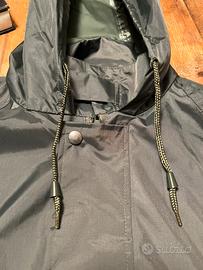 Land Rover - iconico K Way nel colore classico verde scuro . Taglia L . Misure : spalle 48 cm , lunghezza manica 65 cm , da ascella ad ascella 68 cm , lunghezza totale 75 cm .