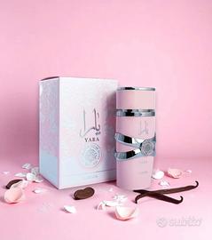 Composizione del profumo Lattafa Yara. Eliotropio, orchidea e mandarino, accordo gourmand e frutti tropicali, vaniglia e muschio. ha una consistenza soffice e talcata che risulta molto femminile e accogliente.