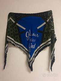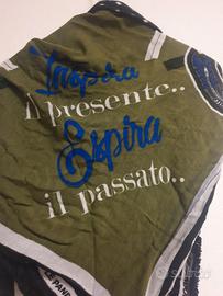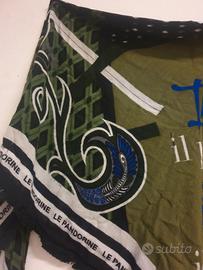 Le Pandorine - sciarpa donna con stampa scritta, multicolori blu-verde-bianco-nero