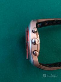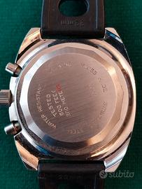 Le Phare raro cronografo subacqueo professionale a 20 atm (200 metri – 600 feet), anni ‘70 dotato di profondimetro meccanico nel vetro tarato fino alla profondità di 100 metri. Movimento meccanico a carica manuale calibro Valjoux 7733, cassa impermeabile in acciaio di notevole diametro con corona in acciaio serrata a vite. . Orologio di estrema rarità.
