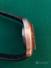 Cassa: in acciaio in tre corpi fondello serrato a vite e ghiera esterna fissa in alluminio con grafica stampata in nero con indicazione dei metri di profondità raggiunta durante l’immersione. Maxi corona in acciaio serrata a vite. Fondello punzonato con scritte perfettamente leggibili: “ tested 600 feet – 200 meters – water resistant – incabloc – Swiss made – stainless steel “. Il fondello interno presenta il numero seriale. Dimensioni cassa: 42,5 mm (corona esclusa) x 46,5 mm (da ansa ad ansa);