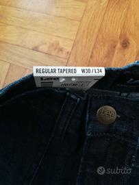 NUOVI, MAI INDOSSATI Pagati 90,00€ Marca: Lee Taglia: 30W 34L Jeans uomo Lee modello Austin colore Blu Navy Regular Tapered: hanno taglio regolare. Gamba dritta, leggermente affusolata alla fine Chiusura con cerniera e bottone Composizione: 98% cotone, 2% elastane Nuovi, con cartellino
