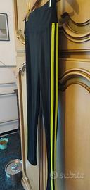 Leggings donna neri con fasce laterali giallo fluo, taglia S/M, misto cotone viscosa elastane. In perfette condizioni, mai indossati.