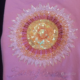 1 paio di Leggins push up della Caledonia colore vinacea tg. M +canotta rosa con inserto perle tg. M.
