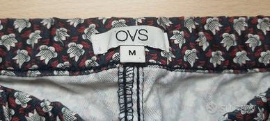 Leggings slim aderente e attillato taglia M, misure in foto. Elastico in vita con tasche su entrambi i lati,finte sul davanti. Fantasia e fiori nei colori del blu, rosso, bianco e nero. Come nuovi. Ottimo tessuto in cotone elasticizzato, coprente