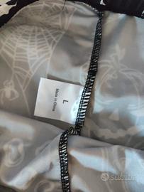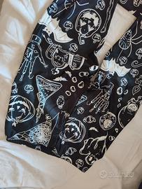 Leggings neri elasticizzati con stampa a tema gotico, alternativo, wiccan Decorati con zucche, pipistrelli, teschi, ragnatele, candele e dettagli spooky. Tessuto morbido ed elasticizzato Vestibilità aderente e confortevole Nuovi mai usati, perfetti da abbinare a felpe oversize o maglie larghe. segnata L ma veste bene anche M