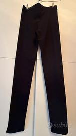Leggings neri, con pizzo sul davanti, elasticizzati, misura vita cm 37, lunghezza cm 104.