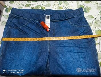 vendo leggings schein causa eccessivamente grandi per me, 18 euro tutti e 3, di cui 2 leggings ( uguali) lunghi neri taglie grandi vita alta, con inserti in rete trasparenti su una gamba (vedi foto), 95% Poliestere, 5% Elastane, elasticizzati, 1 leggings effetto denim lunghezza sotto il ginocchio (vedi foto) vita alta taglia grande, 92% Poliestere, 8% Elastane, elasticizzato, taglia 56 (4xl) ma sono veramente enormi, nuovi, non li ho nemmeno provati perché sono enormi per me, la taglia è 56 ma secondo me dovrebbero vestire una 60 e oltre, perché sono elasticizzati, nelle foto ci sono la misura con il centimetro, la misura lo presa a filo ma sono elastici. eventualmente posso fare altre foto solo 18 euro per 3 leggings di dimensioni comformati non accetto resi restituzioni rimborsi e lamentele varie, vendita tra privati formula visto e piaciuto visto e piaciuto visto e piaciuto