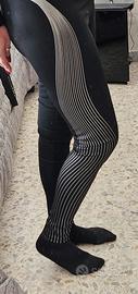 Leggins nuovi neri elasticizzati con bande laterali argentate ad onde. bellissimi e comodi. Taglia L in elastam