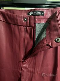 Vendo per inutilizzo leggins di Zara in ecopelle taglia XS colore bordeaux. Il leggins è stato utilizzato una sola volta, quindi è nuovo e non presenta alcun segno di usura. Si presenta con cerniera centrale e bottone e presenta anche delle piccole cerniere laterali che si aprono fino ad altezza caviglia