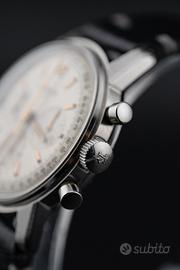 In vendita splendido Lemania 105 cronografo vintage anni ’50, configurazione Tri-Compax con scala tachimetrica. Un classico mid-century con quadrante molto equilibrato, contatori incassati e dettagli coevi.