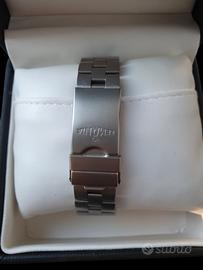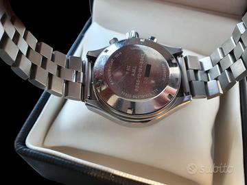 Vendo raro cronografo Lemania ref. 11022 3H, datario in italiano, automatico, uno dei modelli più ricercati e più raro dell'Heuer con movimento Lemania 5100, noto per robustezza e affidabilità. Orologio militare prodotto in Svizzera, cassa e bracciale originali in acciaio (ho tutte le maglie del bracciale), impermeabile 100 metri. Sul fondello sono presenti le incisioni originali: Ref. 11022 AMI 08545-12-198-8642 L'orologio è completo del suo bracciale originale, in ottime condizioni e perfettamente conservato. Quadrante, lancette, cassa e incisioni sono originali. Modello molto difficile da trovare, soprattutto con incisioni AMI. Ideale per collezionisti di orologi militari, appassionati di Lemania, Aeronautica Militare Italiana e cronografi vintage. Solo consegna a mano oppure spedizione con bonifico anticipato.