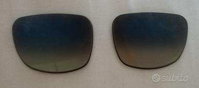 Vendo due lenti per occhiali da Sole da applicare sui Ray-Ban (Ray Ban) Original Wayfarer Classici. Il colore delle lenti è un Blue Flash, ormai fuori produzione da anni (per capire ancor di più il colore e la sfumatura, scorrete la galleria fino alla quinta foto). Comprate nello Store di Roma di Via del Corso per 56 euro anni fa. Il modello di riferimento che le aveva in dotazione in vendita era RB4340 601/4O 50-22 150 3N con montatura color Nero Lucido. Comprate per applicarle, ma mai applicate e riposte in un cassetto. Pari al nuovo.