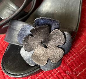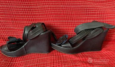 Sandali les lolitas blu con zeppa e lacci da portare alla schiava tacco cm 9 n 37 ben tenuti