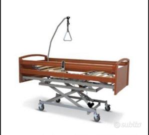 Struttura in legno e sponde laterali con angoli smussati facilmente abbattibili. La soluzione ideale sia in caso di lunghe convalescenze o degenze domentistiche, con rete regolabile elettricamente nelle sezioni della schiena, delle cosce e delle gambe. Doghe in legno flessibile che offrono comfort e resistenza. La struttura inferiore è di tipo a pantografo, le ruote piroettanti possono essere bloccate singolarmente. Alza malato, materasso in memory e telecomando compresi.