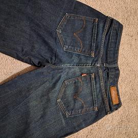 Tessuto non elasticizzato Vita molto bassa La taglia sull'etichetta non corisponde. Veste xxs Controllare le misure fornite: Larghezza vita: cm 33 Largezza fianchi: cm 45 Altezza cavallo: cm 17 Larghezza coscia: cm 24 Larghezza caviglia: cm 21 Lunghezza totale: cm 101