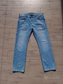 Jeans uomo modello 501 Levi’s, 100% cotone, lavaggio chiaro. Taglia W36 L32 (cintura circa 49 cm, altezza 106 cm, larghezza caviglia circa 21 cm). Condizioni perfette. Classic denim iconico, perfetto come capo base di qualità, stile casual o vintage-casual. Ottimo con t-shirt, felpe o camicie