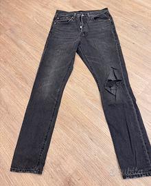 Iconici jeans Levi’s 501 in denim dark grey, modello Skinny con gamba dritta e vestibilità intramontabile.