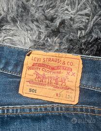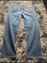 Vendo iconici jeans Levi's modello 501, taglio dritto (straight leg) e chiusura con bottoni. Il denim è di ottima qualità, resistente e con un bellissimo lavaggio blu medio originale.