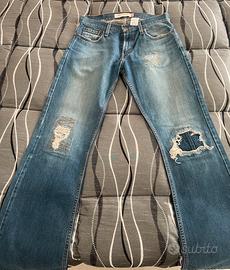 Vendo jeans levis acquistati a new york un anno fa , messi due volte tenuti benissimo, unico difetto come evidenziato in ultima foto una macchiolina di 4mm di diametro ma che una Volta indossati non si nota , per problemi lavorativi la spedizione è gestita da me , non chiedetemi altri metodi . Visto e piaciuto, non si accettano resi le foto , anche per la taglia parlano da sole .