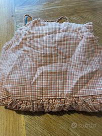 Nuovo con cartellino, lungo a piccoli quadretti arancioni e bianchi taglia S ma veste molto