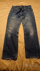 come si vede nelle foto sono presenti piccolo segni di usura sulla gamba destra, bordi gamba pantaloni piccoli sfilacciature.