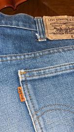 e la cimosa vintage e cartellino bianco dei primi Levi’s storici vintage da collezionismo bellissimi di marchi che hanno portato grandi come stave jobs , james deen , jhon travolta e gruppi come i Rolling Stones ecc